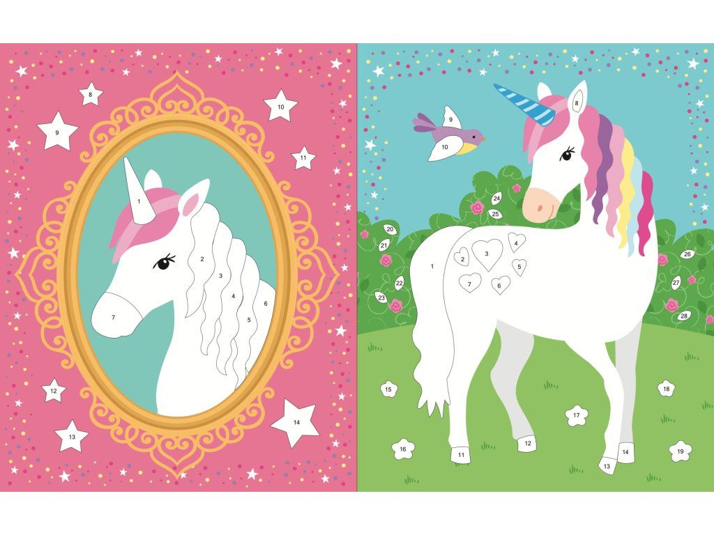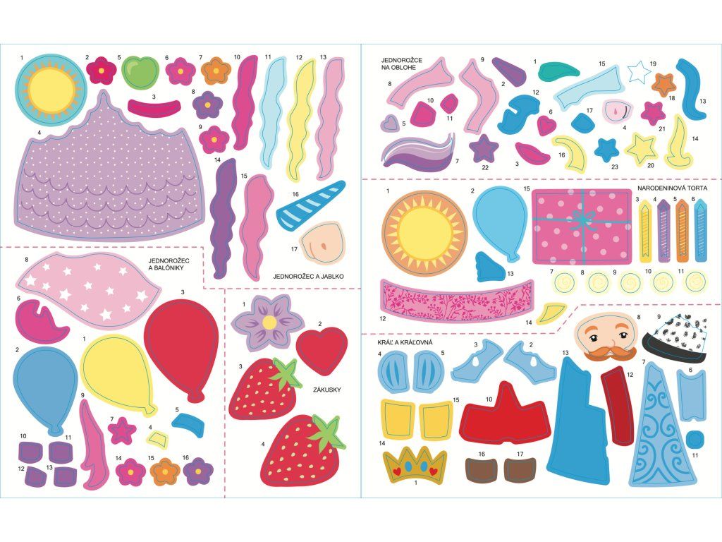 Dotvorte kreatívne stránky s kúzelnými jednorožcami, vznešenou kráľovskou rodinou i lákavými zákuskami. S viac ako 400 samolepkami na doplnenie farebných ilustrácií a stránkami na vyfarbovanie! Tento zošit plný jednorožcov obsahuje viac ako 400 samolepiek, 24 strán na samolepky a 16 strán na vyfarbovanie.Dodatočné parametre