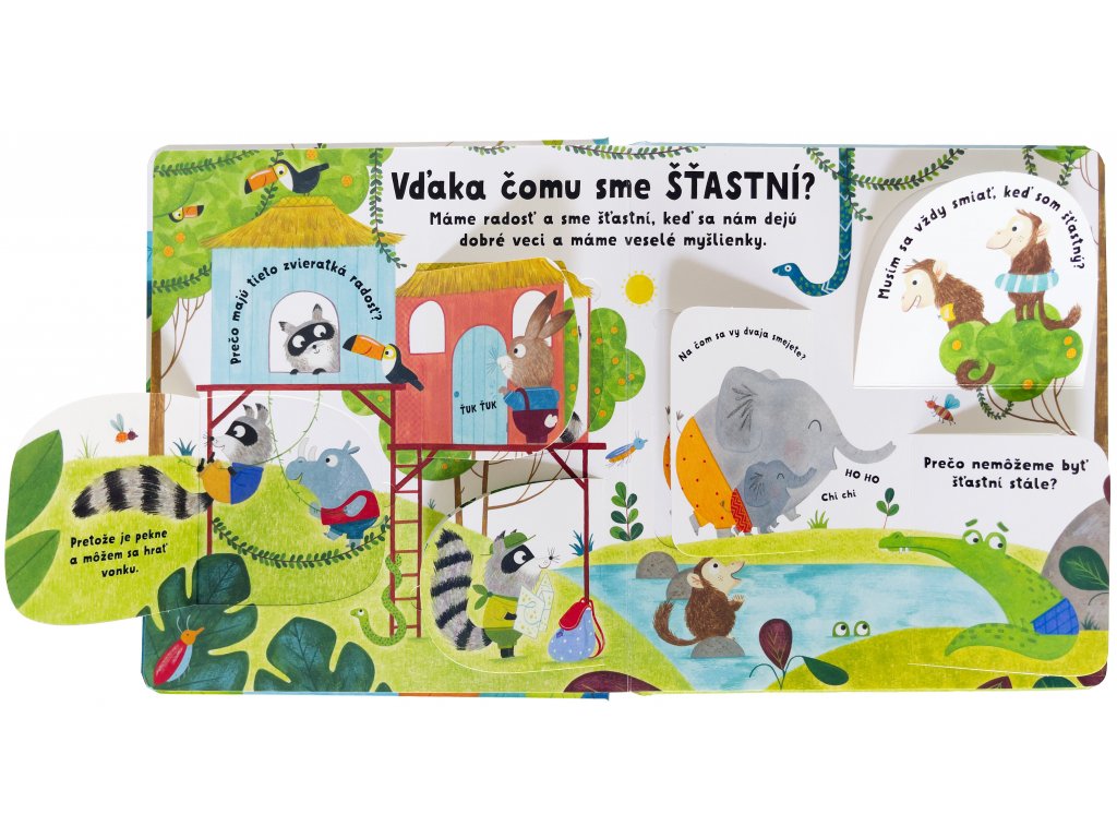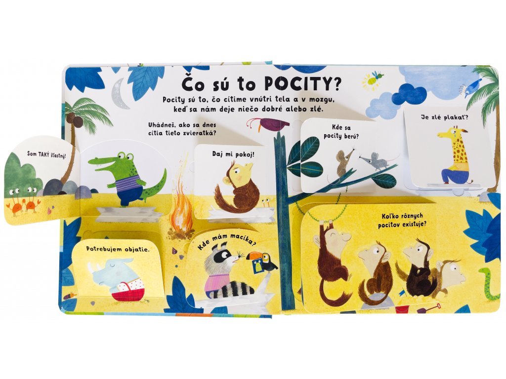 Pocity sú to, čo cítime vnútri tela a v mozgu, keď sa nám dejú dobré alebo zlé veci. Deti sa odjakživa pýtajú, či sú pocity "naše", alebo či nám tak úplne nepatria, keď ako vo vlnách prichádzajú a zase odchádzajú. Inak povedané: čo to pocity sú a kde sa berú? Na tieto otázky nemajú dospelí vždy rýchlu a jasnú odpoveď. V tejto milo ilustrovanej knižke nájdu deti aj ich rodičia odpovede na najčastejšie otázky o pocitoch. Prečo sme šťastní? Prečo sa hneváme? Z čoho máme strach? Je v poriadku chcieť byť chvíľu sám? Ako sa vyrovnať s nežiaducimi pocitmi? Odpovede pod odklápacími okienkami a sympatické zvieratá v ilustráciách deťom pomôžu lepšie pochopiť komplikovaný svet emócií.Slovenské vydanie publikácie vydavateľstva Usborne.