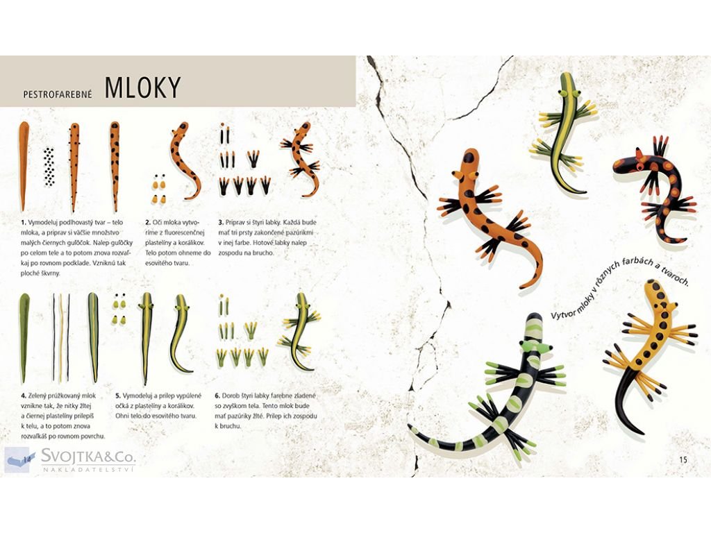 Kniha pre deti, ktoré rady tvoria z plastelíny. Rozvíja priestorovú predstavivosť, dôvtip a kreativitu dieťaťa. Precvičuje manuálnu zručnosť, trpezlivosť a koncentráciu. Rodičom i pedagógom napovie, ako pre deti pripraviť zábavné a neobvyklé činnosti. Originálny prístup v oblasti výtvarných kníh s návodmi a postupmi - každá dvojstrana je pozvaním do fantazijného sveta, v ktorom postavy z plastelíny čakajú na zábavu a príbehy, ktoré pre ne vymyslíte.