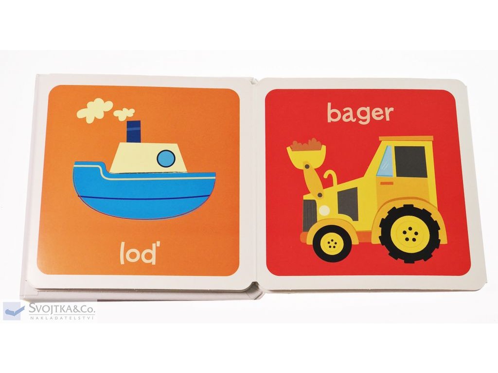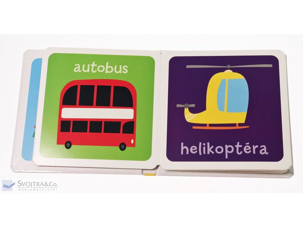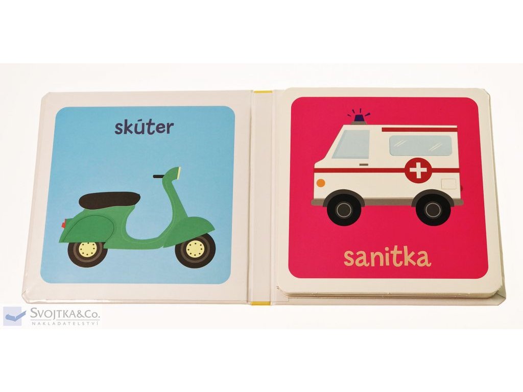 Toto malé leporelo je určené presne pre detské rúčky. Vďaka veselým a jednoduchým obrázkom sa dieťa naučí základné slovíčka o vozidlách. Má to kolesá a jazdí to po ceste, má to krídla a lieta to, pláva to po mori... Čo je to? Naučte svoje dieťatko prvé slová a rozšírte mu základnú slovnú zásobu. Kniha obsahuje zrkadielko, v ktorom deti uvidia samy seba a tiež sa môžu pomenovať.