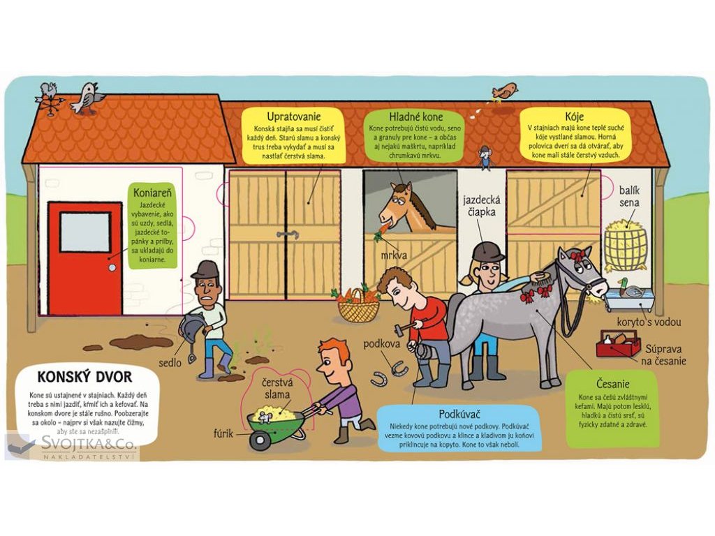 Vitajte na farme! Pozývame všetkých malých prieskumníkov objavovať. Viete, čo všetko sa deje na farme a koho tam môžete stretnúť? Zoznámite sa so všetkými zvieratami z farmy. Dozviete sa, prečo sú poľnohospodárske zvieratá užitočné a ako sa o ne musí farmár s celou svojou rodinou starať, aby boli zdravé a spokojné. A čo ovčiarsky pes? Pomáha mu? Otvorte odklápacie okienka a pozrite sa pod obrázky. Ocitnete sa priamo v centre diania na dvore, v stajni, ale aj v dojárni. V sade a v zeleninovom záhone rastie veľa zdravých dobrôt. Na poliach sa blíži žatva - najrušnejšie obdobie roka. Pomôžte farmárovi zožať plody a obilie, práve keď sú zrelé. Viete, ako prebieha také strihanie oviec? Viete rozlišovať hospodárske stroje a budovy? Na všetky otázky sa malí zvedaví farmári a farmárky dozvedia odpovede v tejto bohato ilustrovanej knižke.