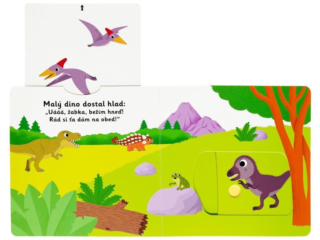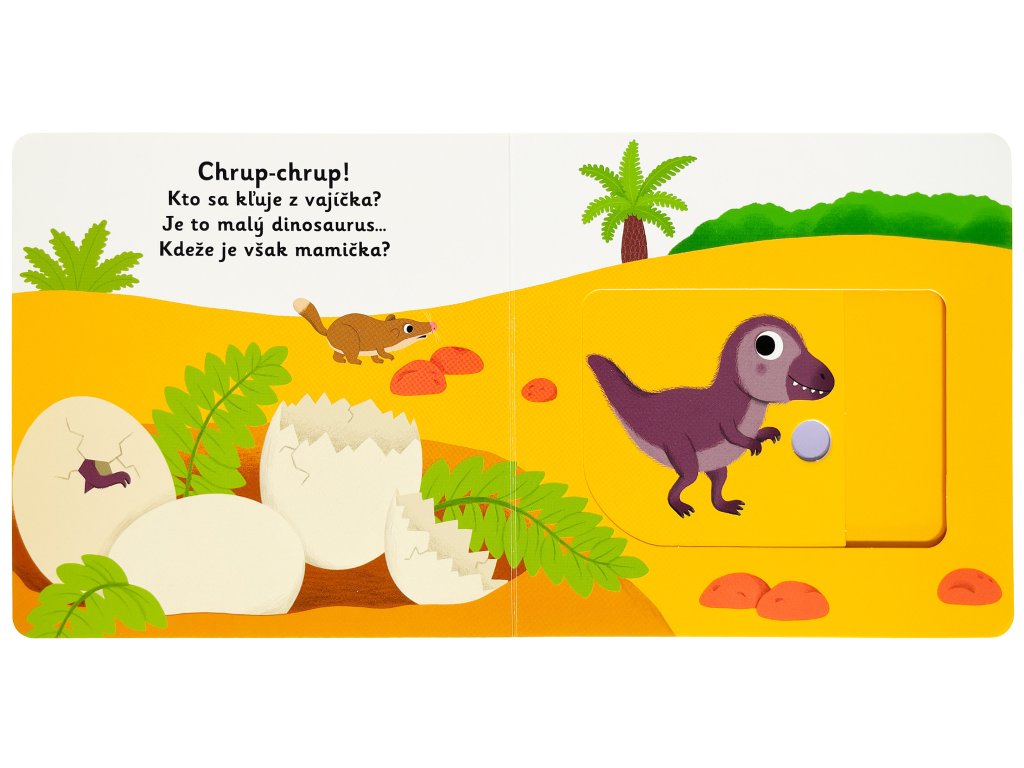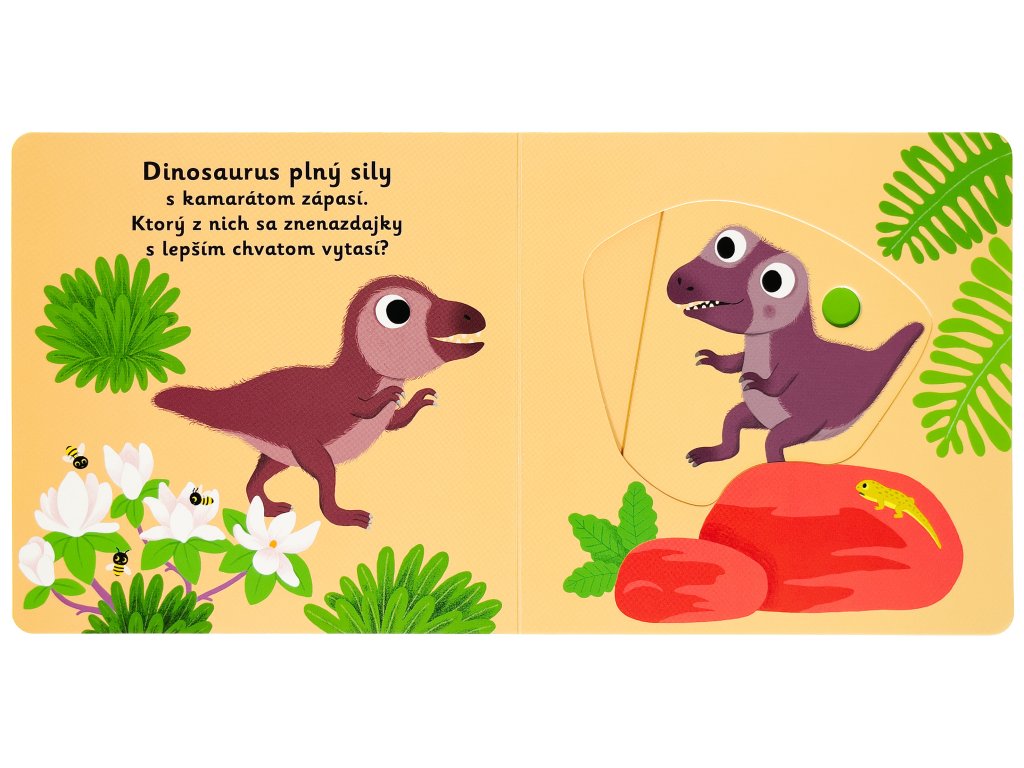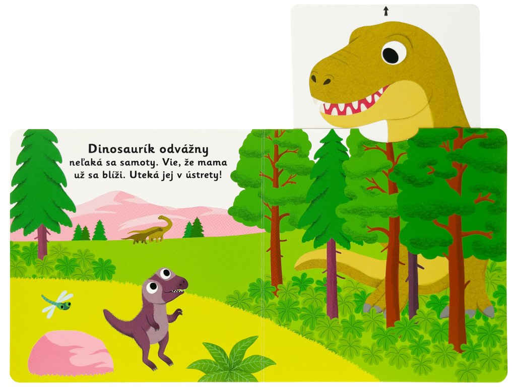 Dinosaurík odvážny neľaká sa samoty. Vie, že mama sa už blíži. Uteká jej v ústrety! Spoznajte príbeh o malom dinosaurovi v tomto veršovanom leporele s milými ilustráciami a pohyblivými prvkami. Objavovať svet s týmto leporelom pre najmenšie deti od jedného roku je také zábavné! Pevné stránky s pohyblivými prvkami precvičia aj jemnú motoriku. Stačí len vložiť prstík do správneho otvoru a ľahko vysunúť, zatiahnuť alebo otočiť a hneď bude váš malý objaviteľ poznať odpoveď na to, ako prebieha deň malého dinosaura.Knižka s prvkami Montessori.