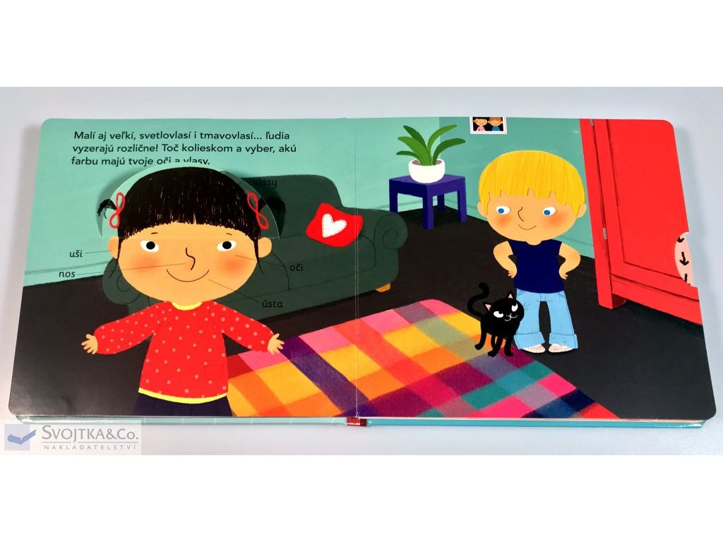 Čo si dnes oblečieš? Pozri sa, ako rýchlo rastieš! O chvíľu ti bude oblečenie malé. A čo tvoja tvár? Môžeš sa smiať, uškŕňať sa a mračiť. Akú farbu majú tvoje oči a vlasy? Tvoje telo potrebuje aj jedlo, aby malo energiu. A pohyb na čerstvom vzduchu. Rýchlo – poďme na ihrisko, bude zábava! A už je zasa večer a musíš ísť spať. Nezabudni si vyčistiť zuby, kým zaľahneš pod perinu. Dobrú noc! Leporelo pre deti od dvoch rokov je plné okienok a pohyblivých prvkov, vďaka ktorým si precvičí aj jemnú motoriku.