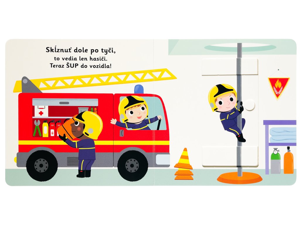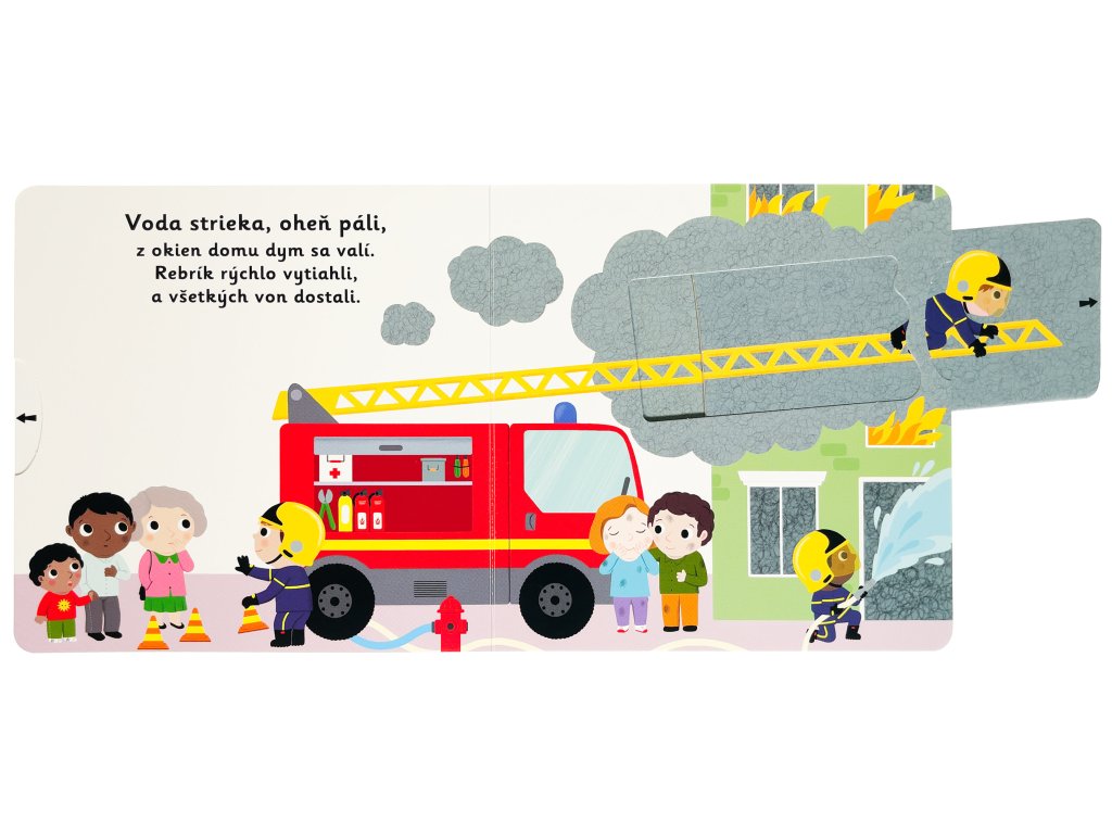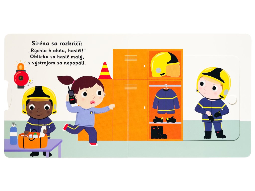 Siréna sa rozkričí: Rýchlo k ohňu, hasiči! Pripoj sa v tomto veršovanom leporele s milými ilustráciami a pohyblivými prvkami k malému hasičovi a zisti, ako vyzerá práca hasičov. Objavovať svet s týmto leporelom pre najmenšie deti od jedného roku je také zábavné! Pevné stránky s pohyblivými prvkami precvičia i jemnú motoriku. Stačí len vložiť prstík do správneho otvoru a ľahko vysunúť, zatiahnuť alebo otočiť a hneď bude váš malý objaviteľ poznať odpovede.Dodatočné parametre