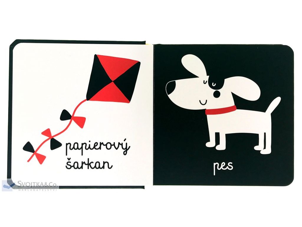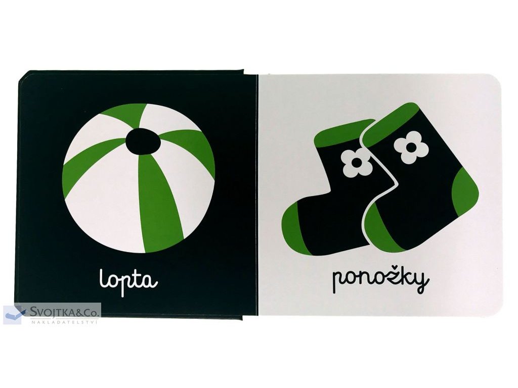 Batoľa lepšie rozlišuje kontrasty, preto má táto obrázková knižka jednoduchú čiernobielu grafiku, ktorá je oživená jednou výraznejšou farbou. Vnútri knižočky nájdete jednoduché trojfarebné obrázky, prispôsobené citlivému detskému zraku, s ktorými sa stretáva. Dieťatko sa s týmto leporela bude učiť spoznávať veci okolo seba. Leporelo je vyrobené z pevného materiálu, má oblé hrany a veľké je tak akurát do detských ručičiek. Je to ideálna prvá kniha v živote vášho dieťatka. Tak šup s ňou do kočíka!