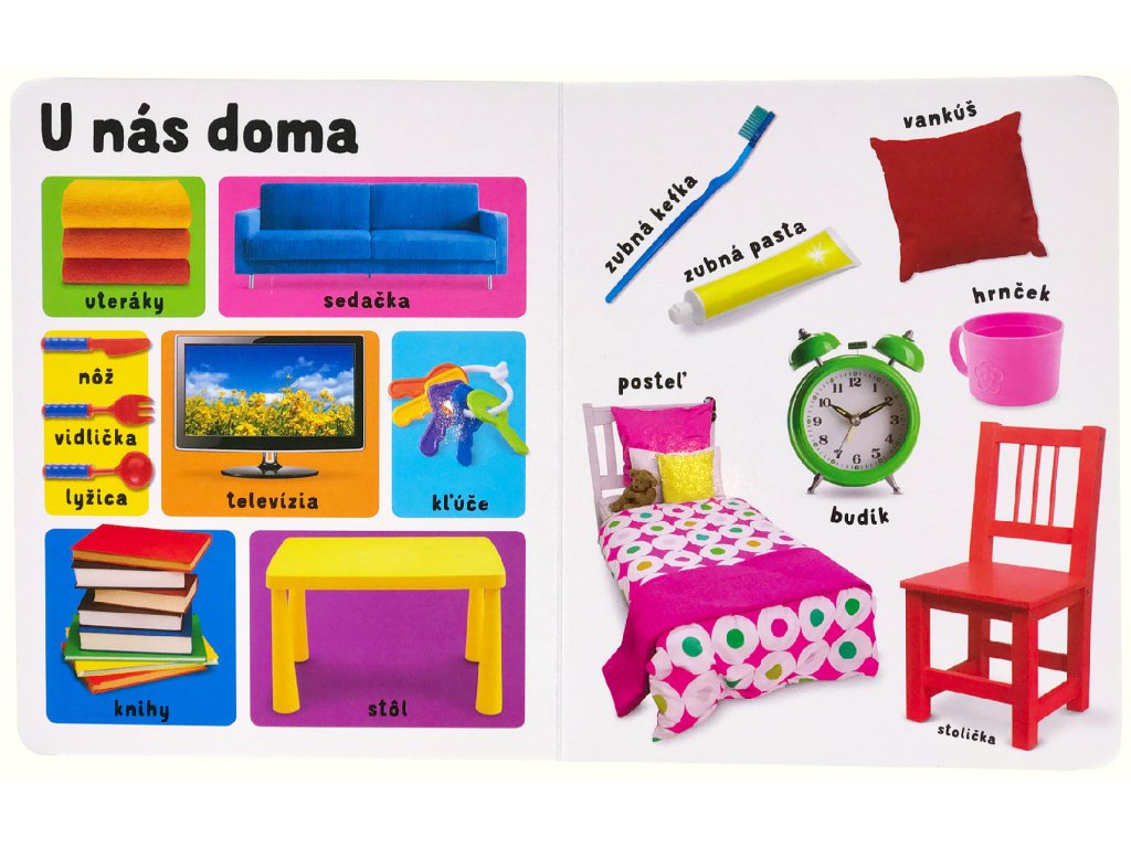 Deti sú obklopené množstvom vecí a predmetov, s ktorými sa musia oboznámiť a naučiť sa ich aj pomenúvať. Hračky, jedlo, nábytok, oblečenie, časti tela... rozhodne je toho dosť. Poďte si so svojím malým zvedavcom a týmto roztomilým leporelom užiť zábavu a pritom mu rozširovať slovnú zásobu. Jednoduché fotografie a výrazné farby deti oboznámia aj so základnými farbami. Malý formát a pevné stránky zaručia hodiny a hodiny zábavy.Dodatočné parametre