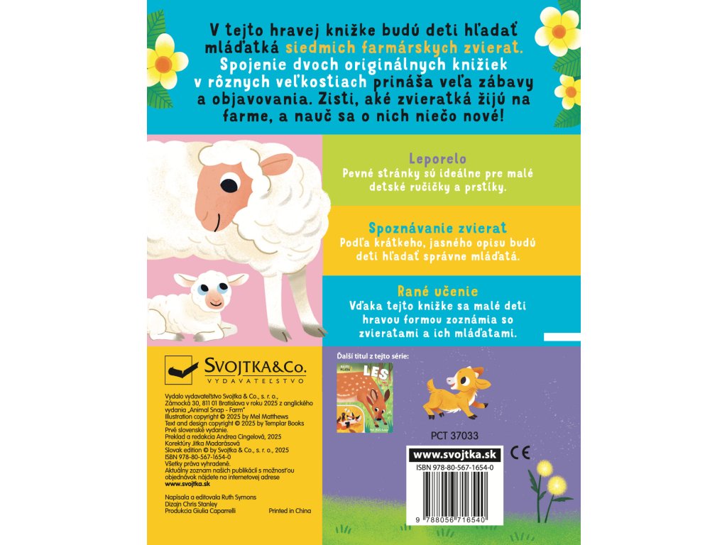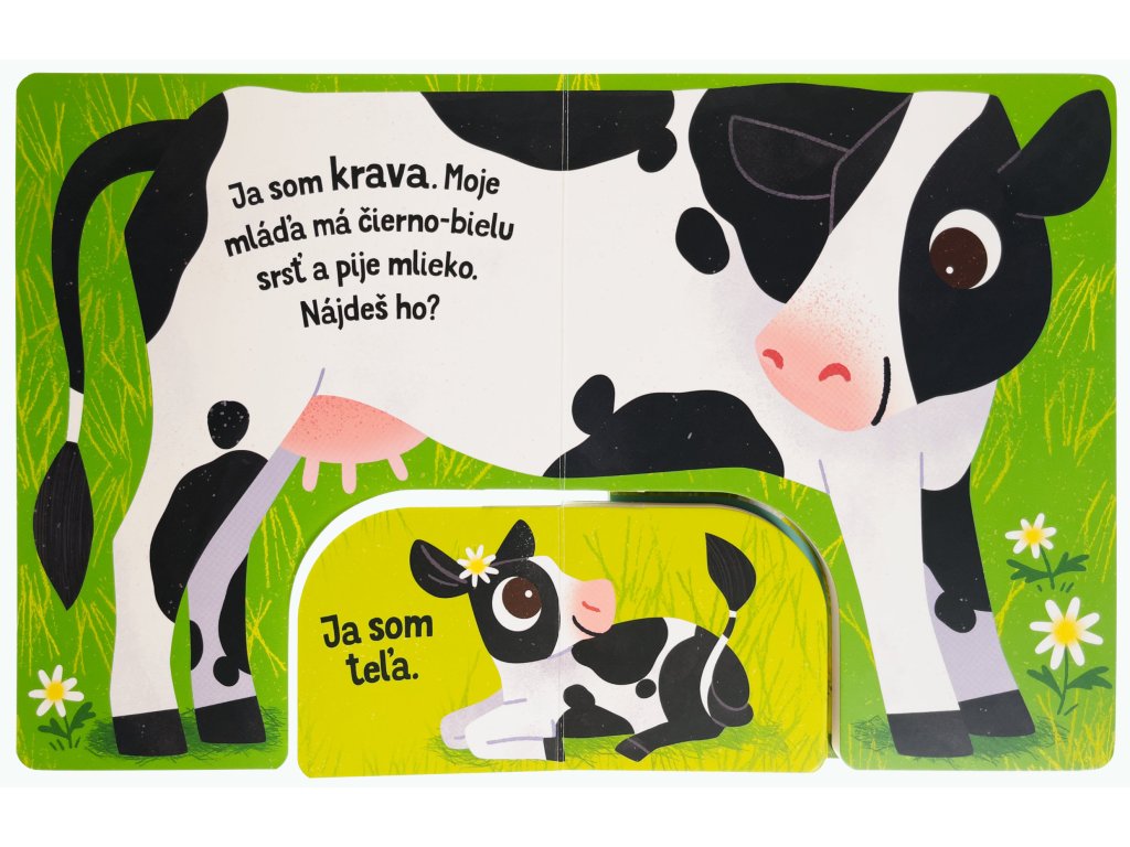 V tomto originálne spracovanom leporele čaká na deti zábava aj spoznávanie. Vďaka prepojení dvoch leporel rôznych veľkostí budú deti na základe jasného a krátkeho popisu hľadať správne mláďatá zvierat na farme. Pevné stránky sú ideálne pre malé ručičky a robia z tejto knihy perfektného spoločníka na jedno z prvých zoznámení sa so svetom zvierat. Malé deti si precvičia jemnú motoriku a pršteky, spoznajú prvé slovíčka a zoznámia sa so zvieratami a ich mláďatami.Nájdi mláďa Farma