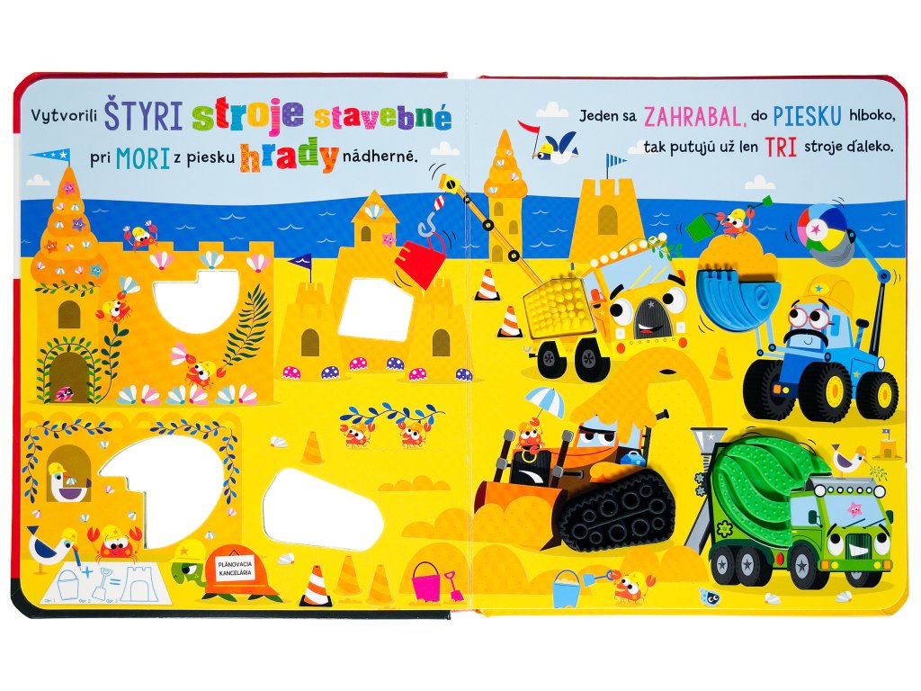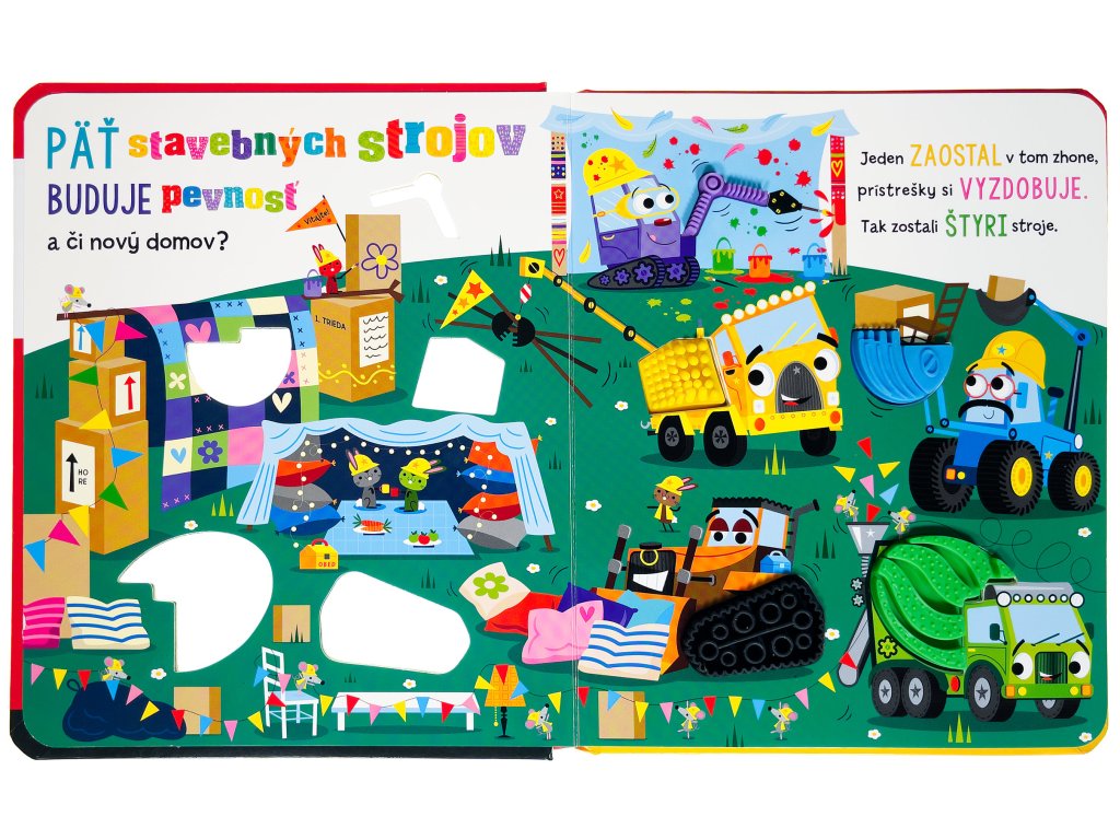 Päť stavebných strojov usilovne pracuje na tom, aby vytvorili množstvo úžasných vecí. Pridaj sa k nim a precvič si počítanie od 5 do 1 s tým, ako stavebné stroje ubúdajú. Ohmataj ich povrch… ak sa odvážiš! Rozličné povrchy a štruktúry na stránkach pomôžu deťom s rozvojom spoznávania okolitého sveta pomocou viacerých zmyslov a zábavné a veselé ilustrácie pobavia nielen najmenších, ale aj nás, dospelých.Dodatočné parametre