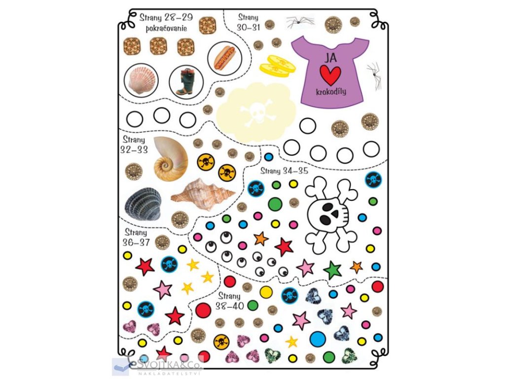 Zabav sa pri dopĺňaní pirátskeho lodného denníka pomocu samolepiek a farieb. Toto tvoje dielo zachráni pred skazou jedinečný ochranný obal. Obsahuje vyše 1000 samolepiek, ktoré môžeš používať v knižke alebo kdekoľvek inde. Vytrhni hárky a maj ich po ruke pri plnení úloh na jednotlivých stránkach. Nájdeš tu aj nálepky navyše, ktoré môžeš použiť kdekoľvek vnútri tejto knihy!