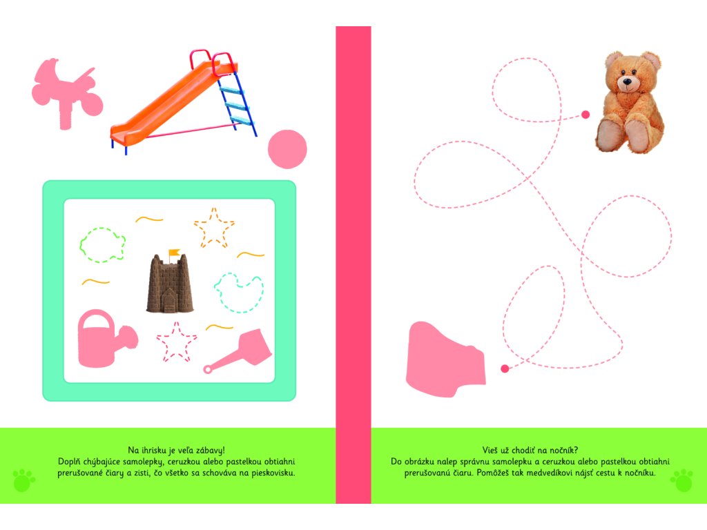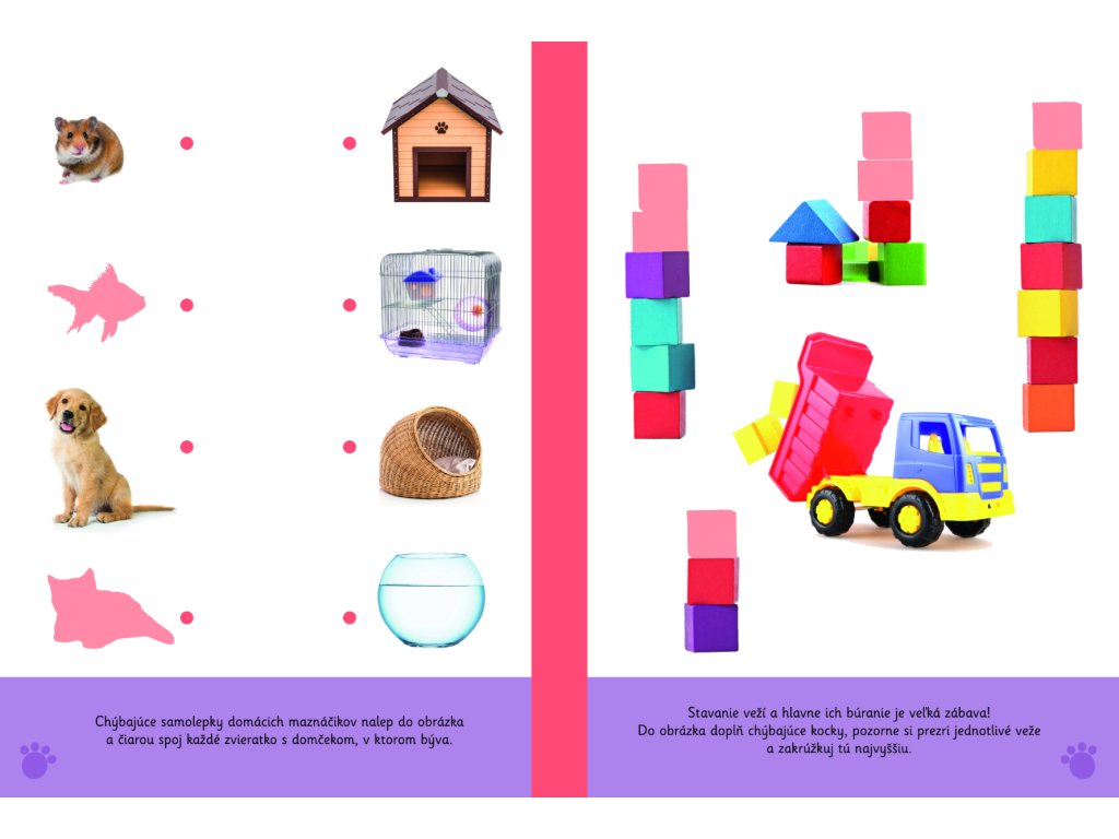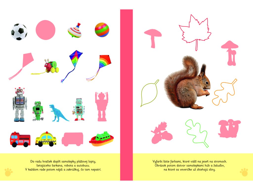 Rad Malé kroky podporuje postupné osvojovanie jazyka a pomáha deťom objavovať svet. Zábavné úlohy uľahčia deťom spoznávať a zoznámiť sa s číslami a získajú povedomie o počítaní. Zošit obsahuje cvičenia na vyfarbovanie, dolepovanie veselých samolepiek a spájanie obrázkov. Na jednotlivých stránkach deti riešia úlohy, kde precvičujú jemnú motoriku, predstavivosť, sústredenie, ale aj pochopenie spojitostí a riešenie problémov v danom kontexte. Veselé obrázky sú zamerané na dopočítavanie a dopĺňanie predmetov či zvierat, sú doplnené realistickými fotografiami a výraznými farbami, ktoré deťom predstavia predmety z každodenného života, zvieratá a potraviny. Tak, pastelky do ruky a poď si užiť veľa zábavy!
