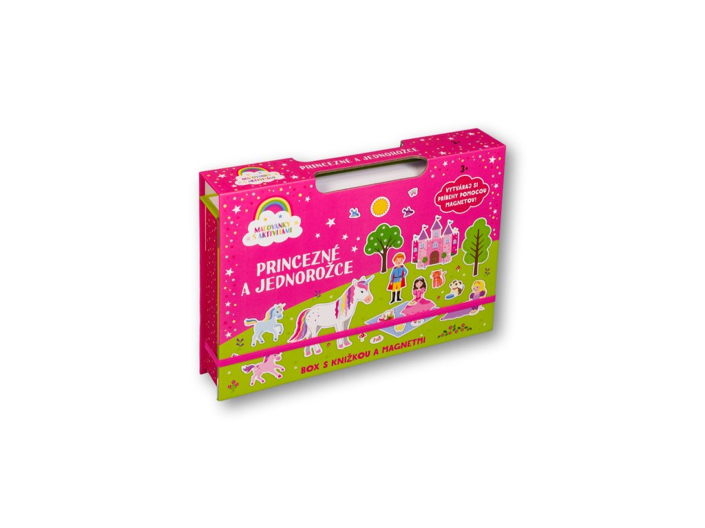 Tento praktický box s držadlom obsahuje množstvo magnetov princezien a jednorožcov na hranie a vytváranie príbehov. Magnety sa ľahko umiestnia na otvorenú stranu boxu a môžeš sa s nimi hrať podľa vlastnej predstavivosti a vytvárať si vlastné príbehy. Súčasťou boxu je aj maľovankový zošit s množstvom aktivít na vyplnenie. Prekresli princeznú, doplň rady, hľadaj správny tieň, prejdi záhradným bludiskom a predovšetkým vyfarbi veľa obrázkov.