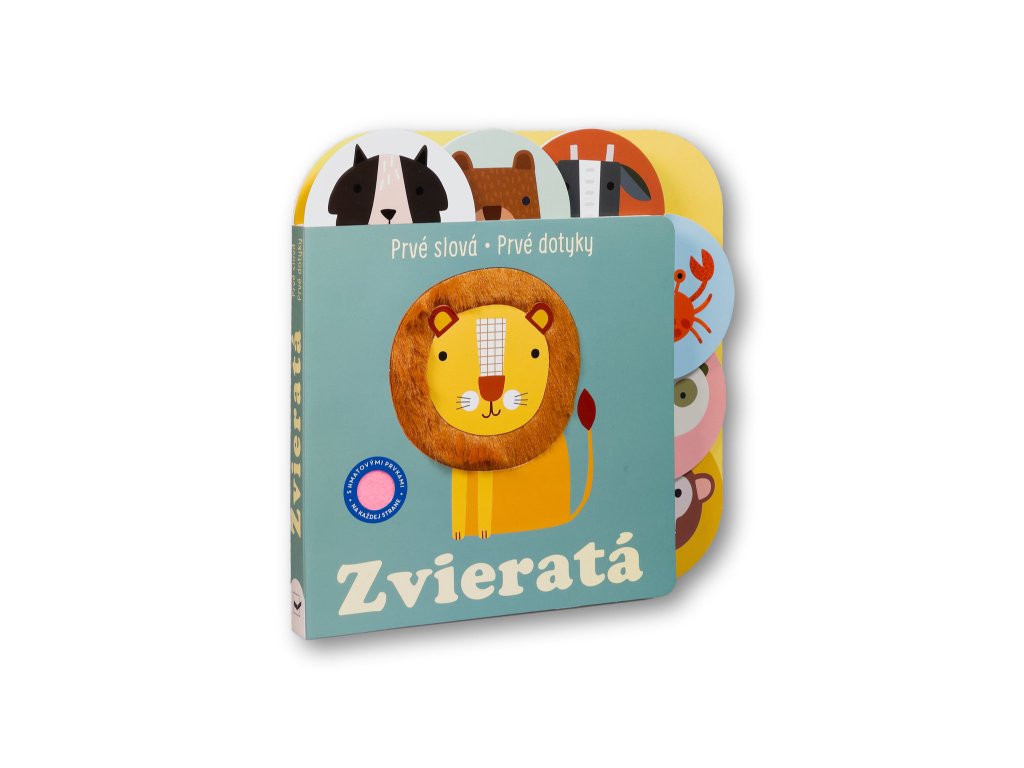 Leporelo z radu "Prvé slová - Prvé dotyky" s hmatovými prvkami na každej strane pozýva najmenšie deti do sveta zvierat z lesa, farmy, oceánu, savany i džungle. Deti si môžu ohmatať mäkučké zvieracie chvosty, hrboľaté krky či drsnú kožu, prechádzať prstami po stránkach a hľadať, kto sa kde schováva. Jednoduché vety so zvukmi a otázkami podporujú prvé rozprávanie o zvieratách a ich prostredí. Výrazné ilustrácie, pevné stránky so záložkami a rozmanité povrchy rozvíjajú hmat, zrak, myslenie aj radosť z objavovania sveta zvierat.