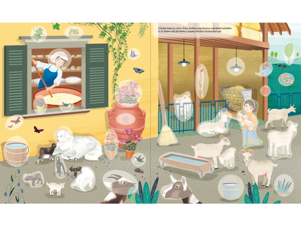 Navštív farmu a objav všetky farmárske zvieratá! A nielen to - dozvieš sa o každodennej práci farmárov, roľníkov, pestovateľov. Prehliadneš si dvor, chlievy, stajne, pastviny, záhony a mnoho ďalšieho. Listuj zošitom, prehliadaj si rôzne zákutia a vytvor si svoju farmu tak, že do nej nalepíš viac ako 400 samolepiek! S týmto samolepkovým zošitom spoznáš, ako to funguje na farme.Dodatočné parametre