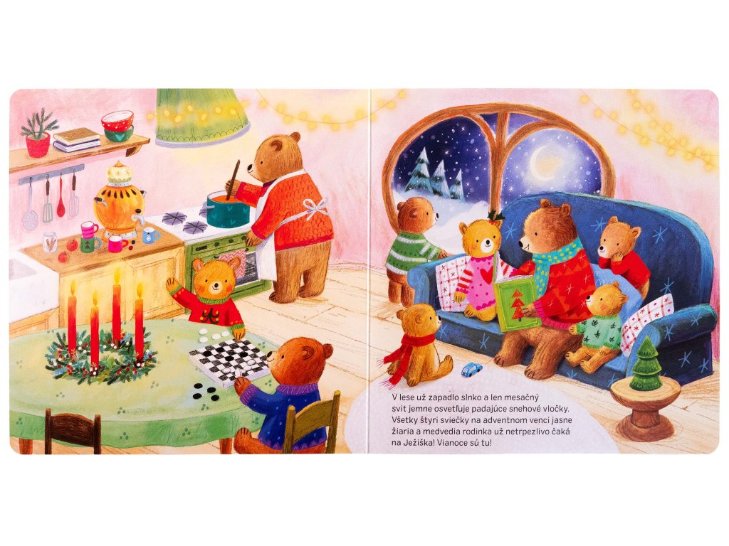 Behom adventu majú všetci plno práce. Zvieracie rodinky vyrábajú krásne dekorácie, pečú koláčiky alebo nacvičujú vianočné koledy. Až nastane Štedrý večer, zvieratká ho spoločne oslávia v zasneženom lese. Nahliadnite k zvieratkám do domčekov a nechajte sa zahriať kúzelnou sviatočnou atmosférou. Skráťte si čakanie na Ježiška a na konci tejto vianočnej knižky postupne otvárajte 24 adventných okienok.Dodatočné parametre