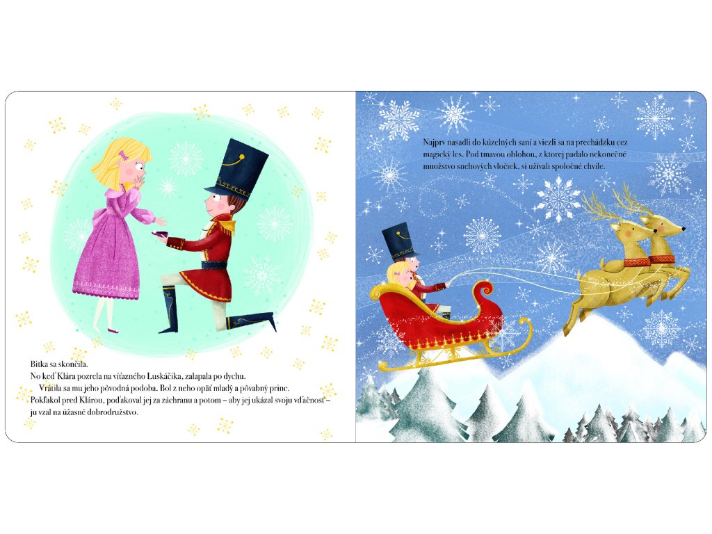 Nechajte sa spoločne s deťmi okúzliť vianočným príbehom o malej Klárke a statočnom Luskáčikovi. Keď Klárka na Štedrý deň dostane od svojho strýka, úžasného výrobcu hračiek, dreveného luskáčika v tvare vojačika, zamiluje si ho na prvý pohľad. Ale čo sa stane, keď príde noc? Jedno neskutočné dobrodružstvo na Klárku práve čaká. Buďte svedkami boja s Myším kráľom či výpravy do Kráľovstva sladkostí. Tento už tradičný vianočný príbeh doplnený o mäkké okienko s trblietavými vločkami je ako stvorený na dlhé zimné večery.