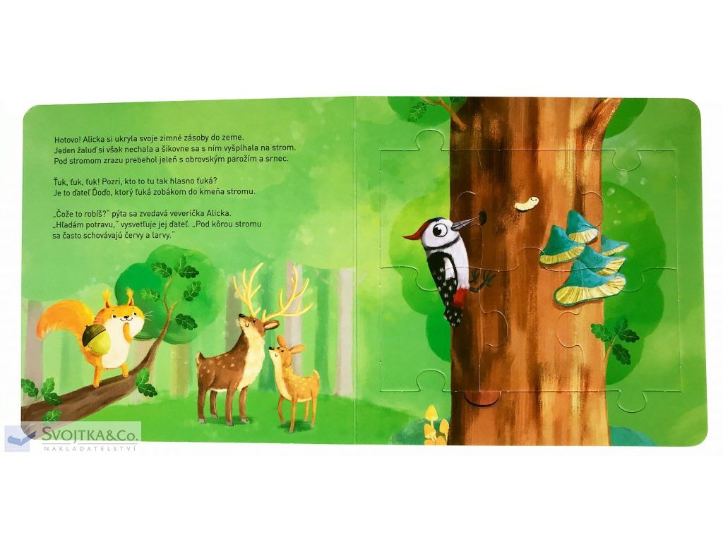 Päť menších skladačiek so šiestimi dielikmi sa dá spojiť do jedného veľkého 30-dielikového puzzle. Pod každou skladačkou sa skrývajú hádanky a otázky k príbehu veveričky Alicky. Spolu s ňou a ďalšími lesnými zvieratkami môžu zvedavé deti preskúmavať les. Skvelá zábava, ktorá podporuje zručnosť, sa môže začať!